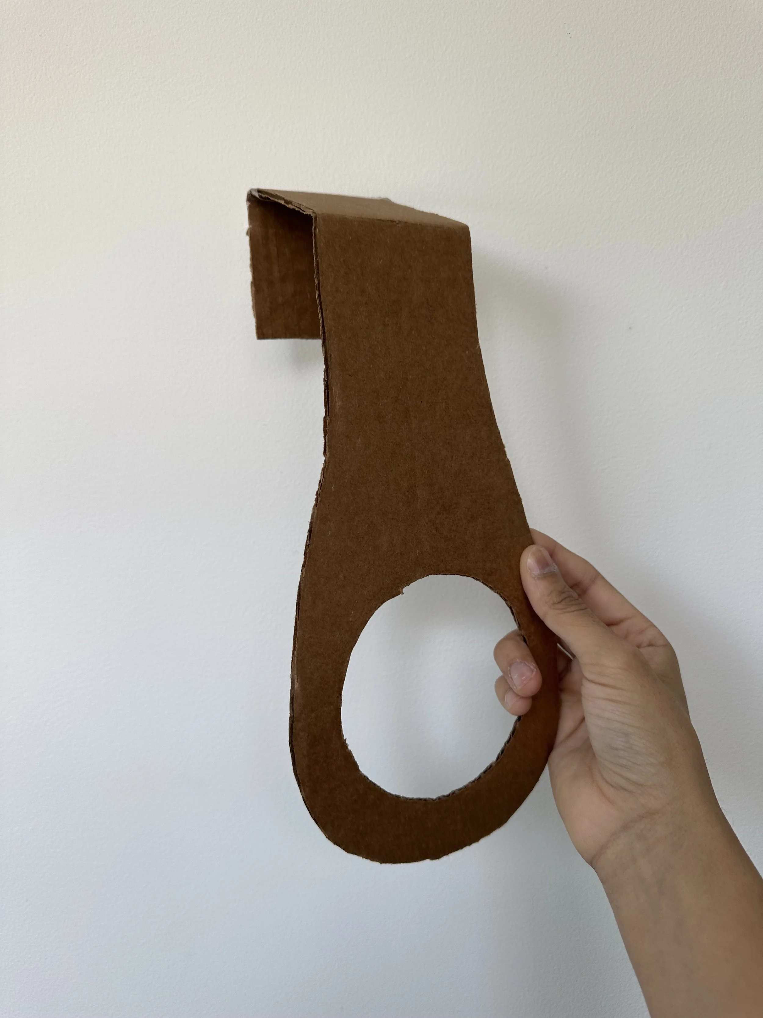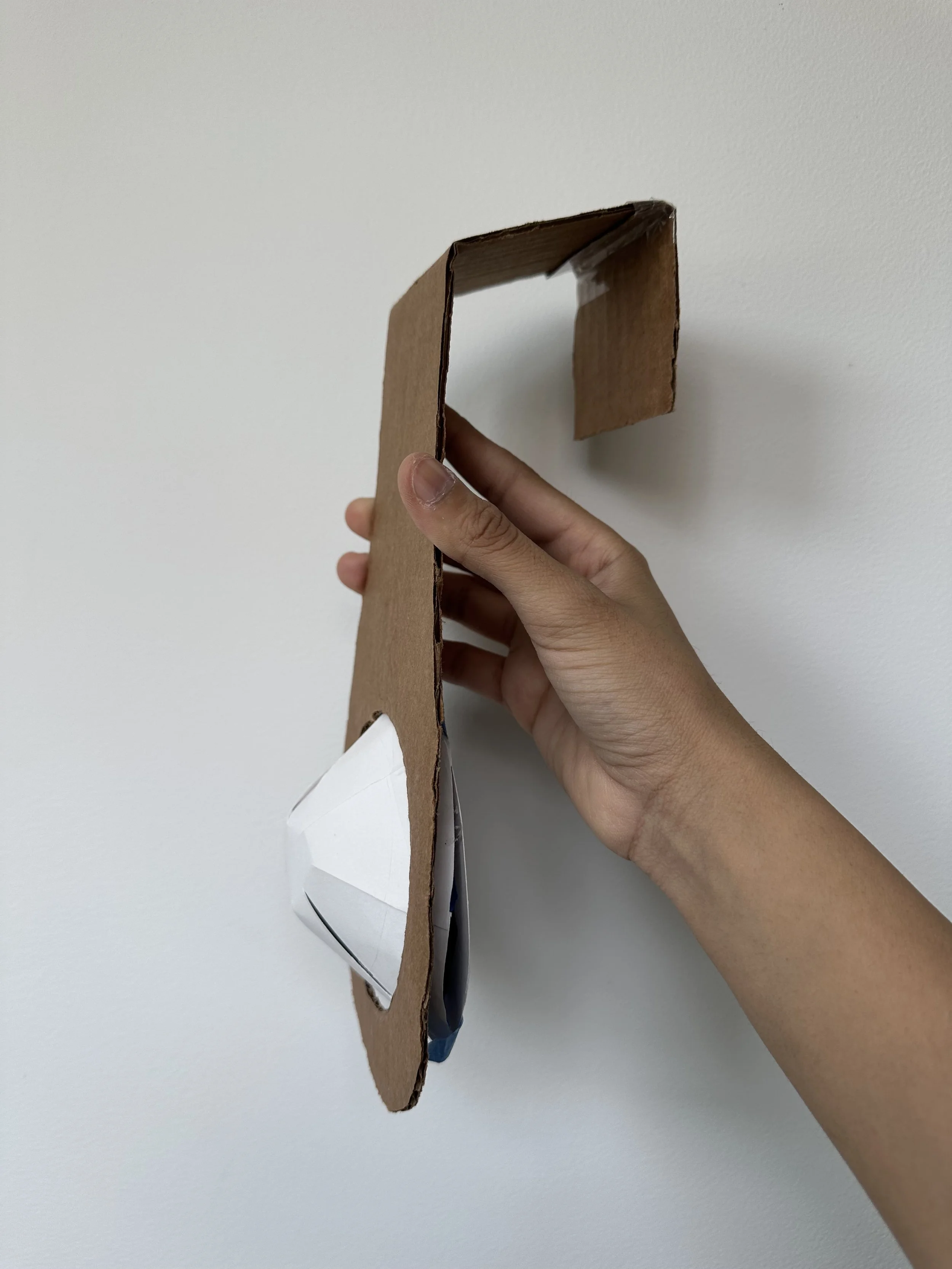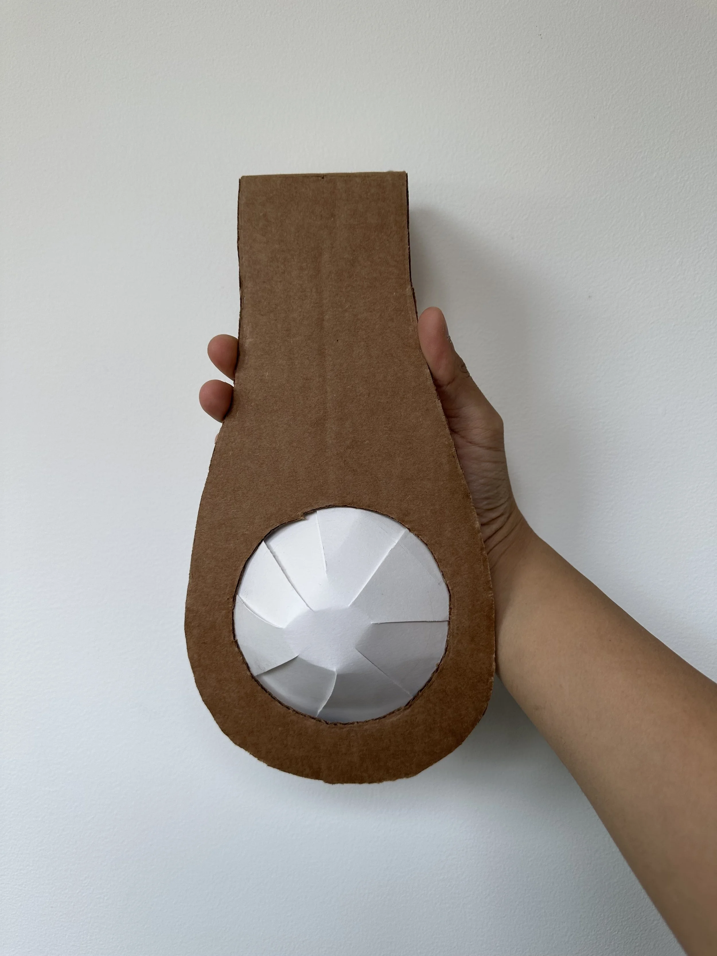 Beginning full scale model with cardboard to study multi part components and consider light and battery placement.