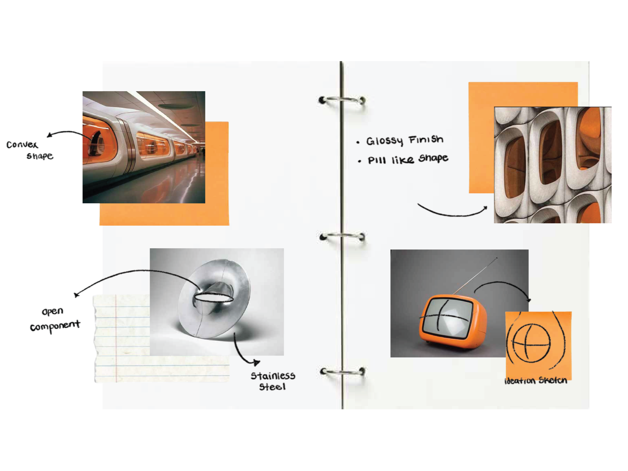 I focused on retro futuristic aesthetic, using rounded, pill like forms and steel finishes as the foundation for my sketch explorations.