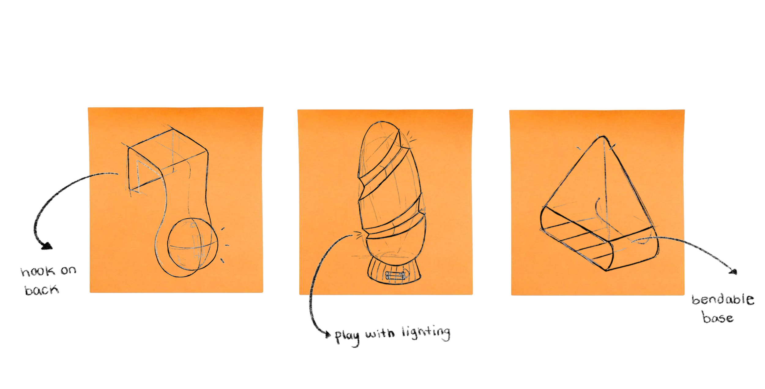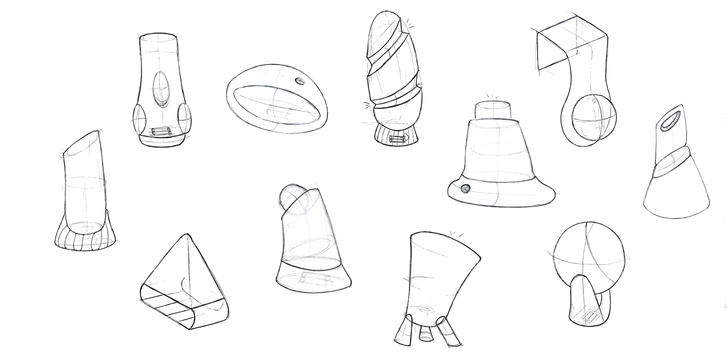 Thumbnail sketches exploring early concept ideas, experimenting with soft edges and forms while considering lighting placement.