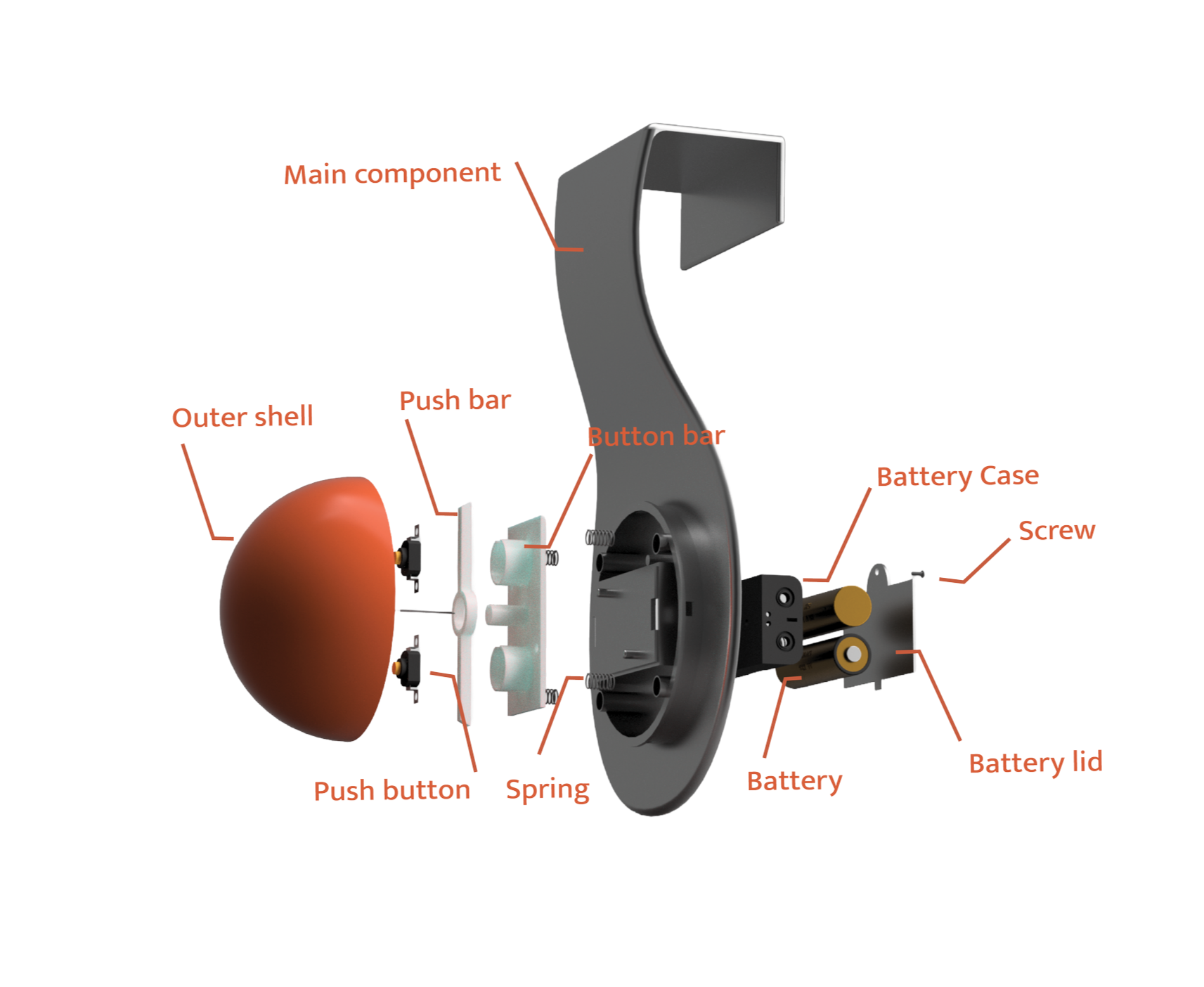 Internal components arranged to highlight the placement of each part and demonstrate how they interact with each other.