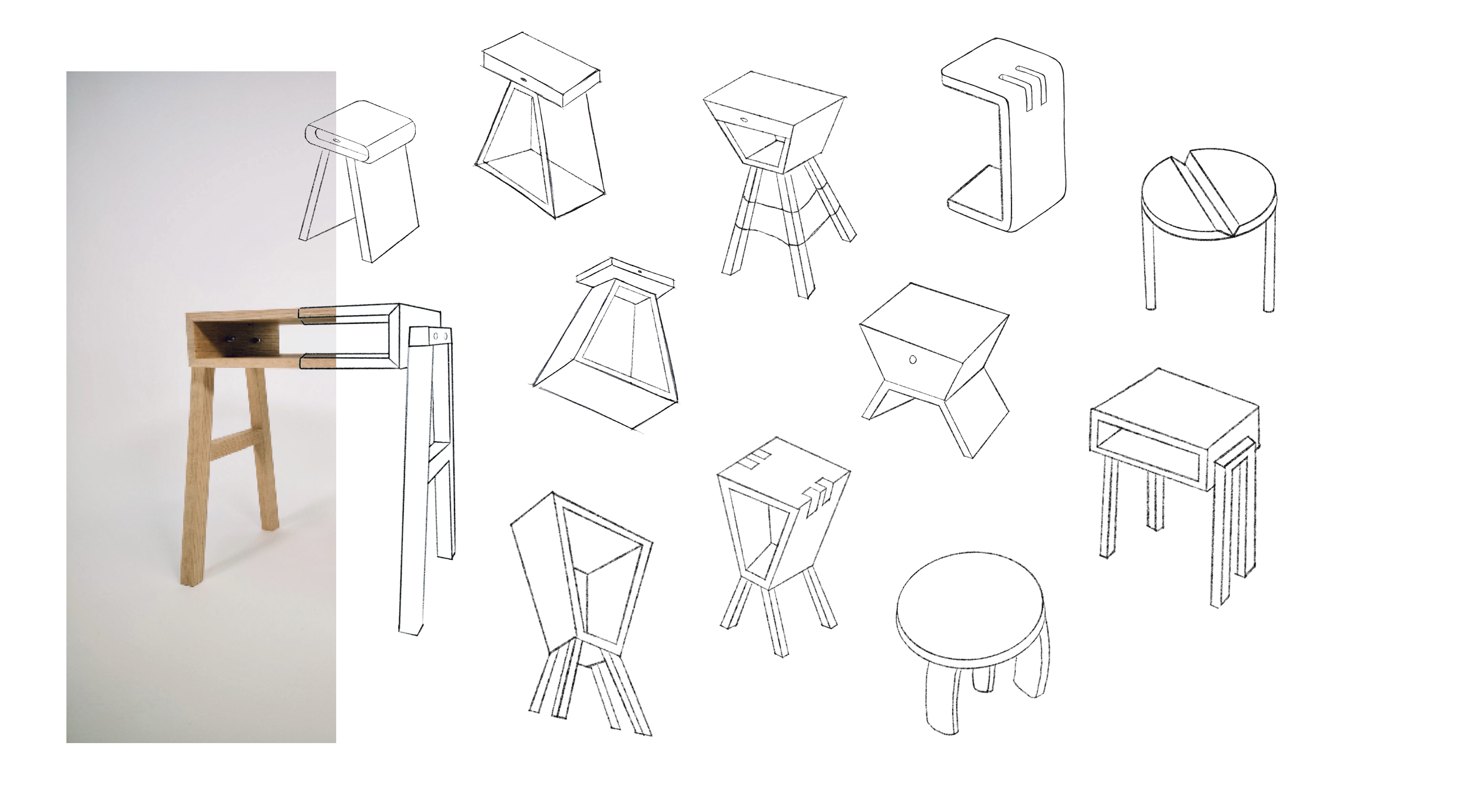 Exploratory furniture sketches exploring form and variation.